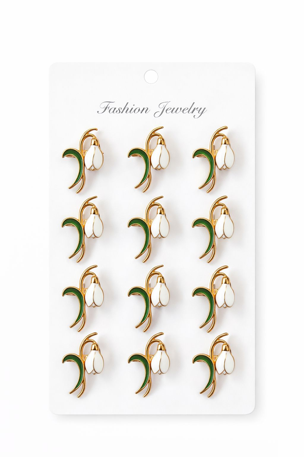 Intampina zilele insorite cu acest set 12 brose Martisor, 17x10 cm, Ghiocel. Designul delicat care reda forma clasica a ghiocelului transforma fiecare brosa intr-un martisor autentic si plin de insemnatate, perfect pentru a fi purtat cu drag in piept ca simbol al renasterii naturii.