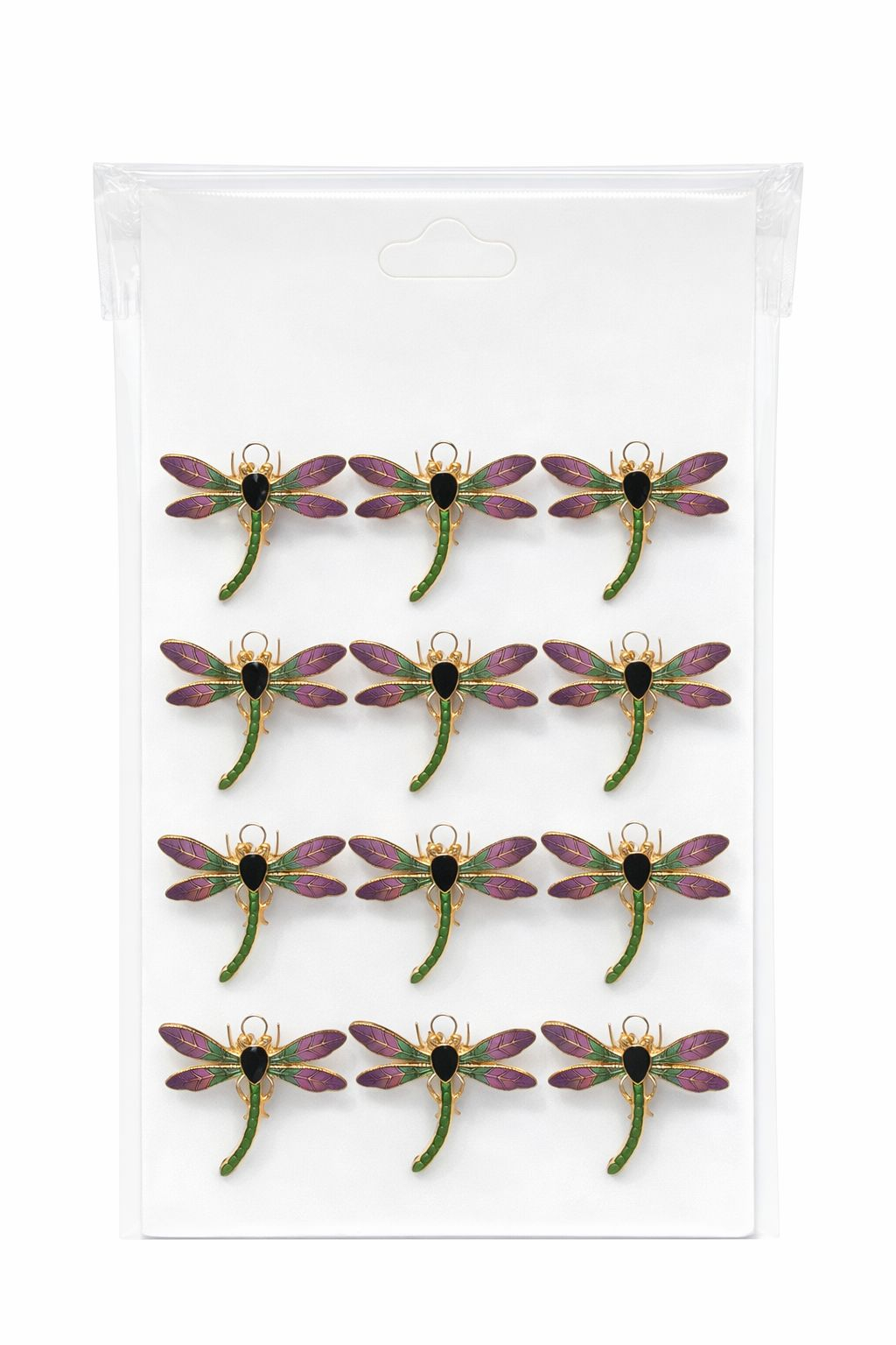 Adauga o nota de mister si eleganta tinutelor tale cu acest set 12 brose Martisor, 17x10 cm, Libelula verde / mov. Contrastul cromatic dintre aripile verzi si corpul in nuante de mov transforma fiecare brosa intr-un accesoriu sofisticat, perfect pentru a fi purtat ca simbol al renasterii naturii.