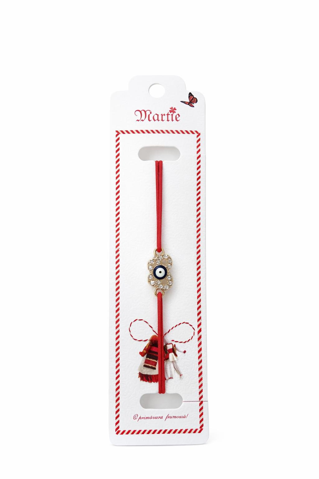 Set de 24 bratari martisor cu snur rosu elastic, fiecare bratara fiind decorata cu un fluturas auriu realizat din material metalic, accesorizat cu strasuri fine si talisman protector central. Fluturele este un simbol al transformarii, renasterii si energiei pozitive, iar talismanul protector este asociat cu norocul si protectia impotriva energiilor negative. Snurul rosu este elastic, confortabil si usor de purtat, potrivit pentru orice varsta. Bratarile sunt ambalate individual pe carton martisor, fiind ideale pentru a fi oferite cadou cu ocazia zilei de 1 Martie, in scoli, gradinite, firme sau evenimente speciale.