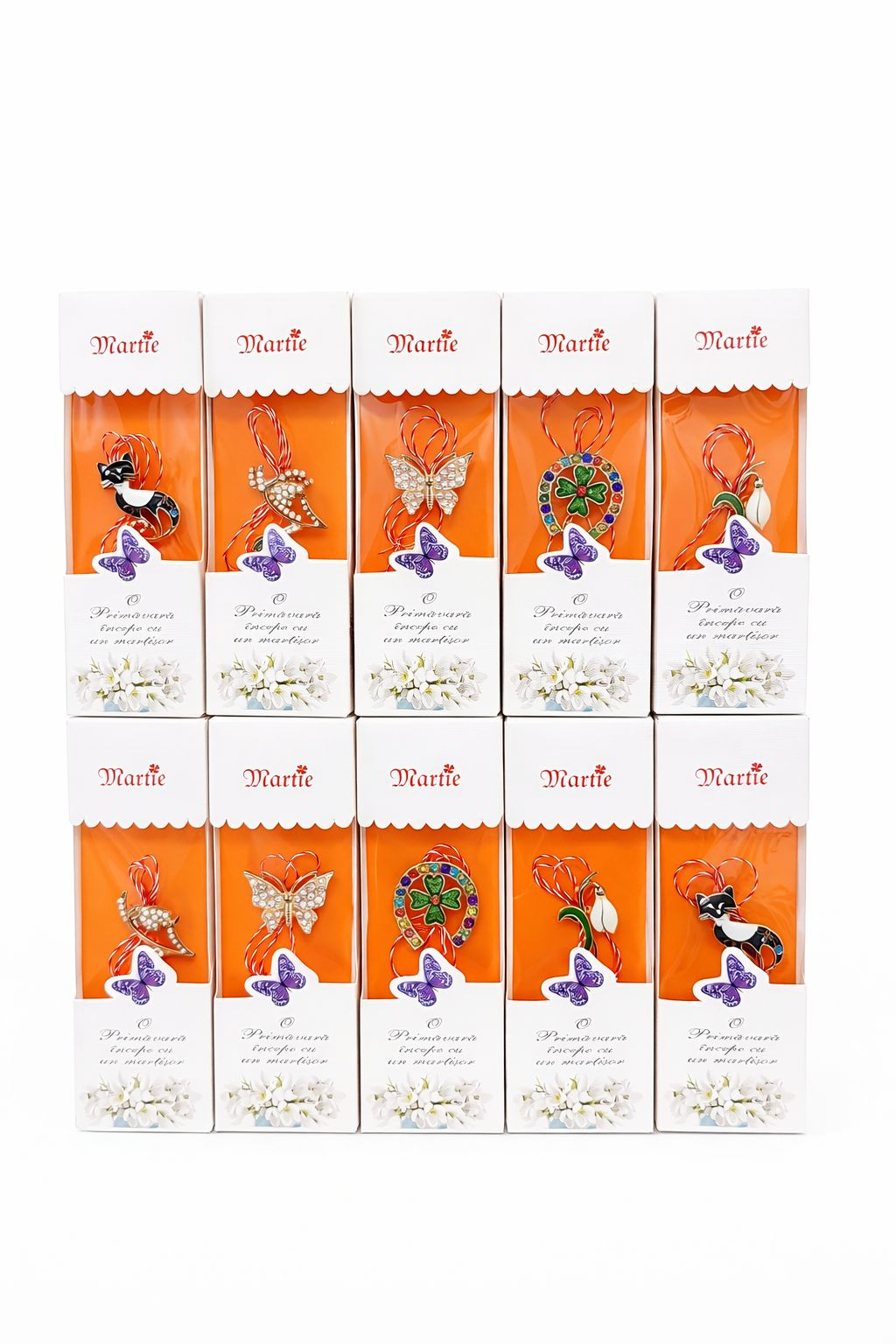 Alege confortul si eleganta cu acest set 24 brose Martisor, 13x4 cm, modele mixte, ambalate individual. Avantajul ambalarii individuale transforma aceste martisoare intr-un cadou gata de oferit, protejand in acelasi timp finisajele metalice si snurul traditional.