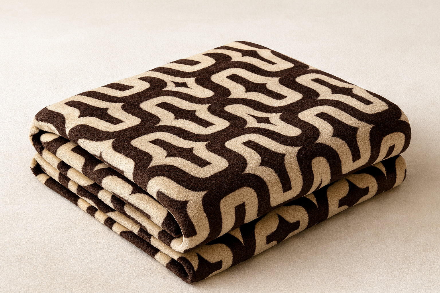 Modelul geometric maro-crem adauga un plus de personalitate dormitorului si se integreaza usor in orice decor datorita paletei cromatice neutre. Este o alegere excelenta pentru cei care doresc o patura practica, dar si cu impact vizual, ideala pentru acoperirea patului, dar si pentru decor.