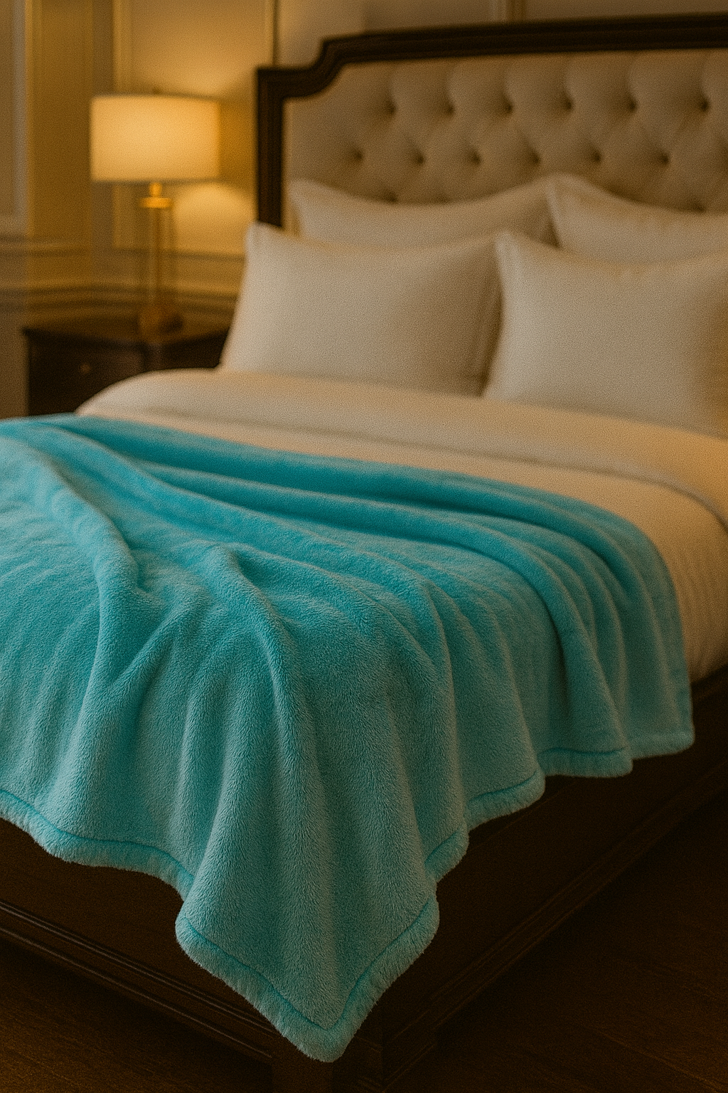 Adauga un strop de prospetime si confort dormitorului tau cu aceasta patura Cocolino albastru turcoaz, 200x230 cm, special conceputa pentru paturi duble. Cu o greutate de aproximativ 1 kg, patura ofera un echilibru perfect intre usurinta si caldura, fiind ideala pentru serile racoroase.