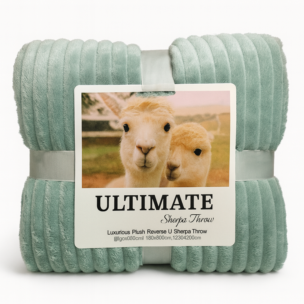 Are doua fete: una moale, plusata cu model ribbed si una pufoasa tip Sherpa, gandita pentru a pastra caldura mult timp. Este perfecta pentru dormitor, living, cadou sau pentru un plus de confort in zilele friguroase.