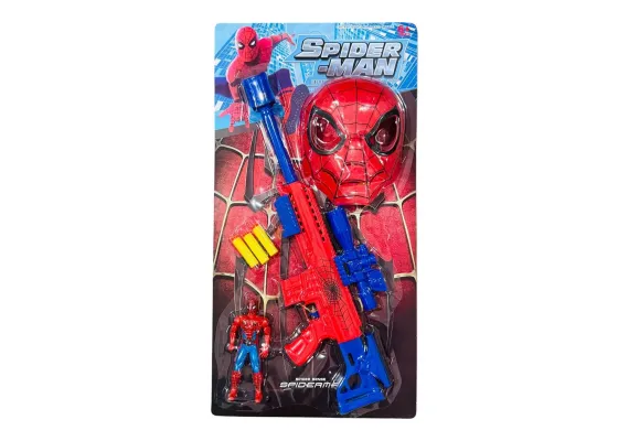 Set pentru baieti cu pusca, proiectile moi, figurina erou si masca, multicolor, 64×32cm,
