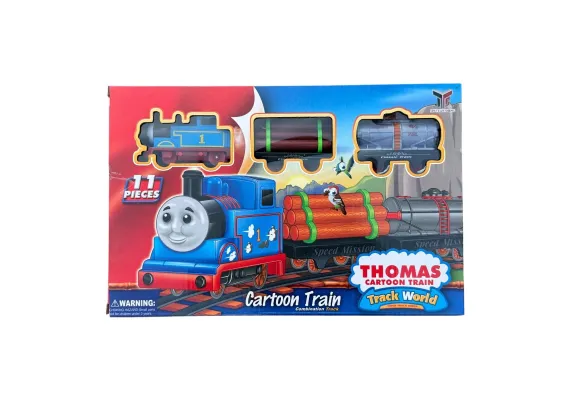 Set trenulet vesel cu sina si vagoane, multicolor,