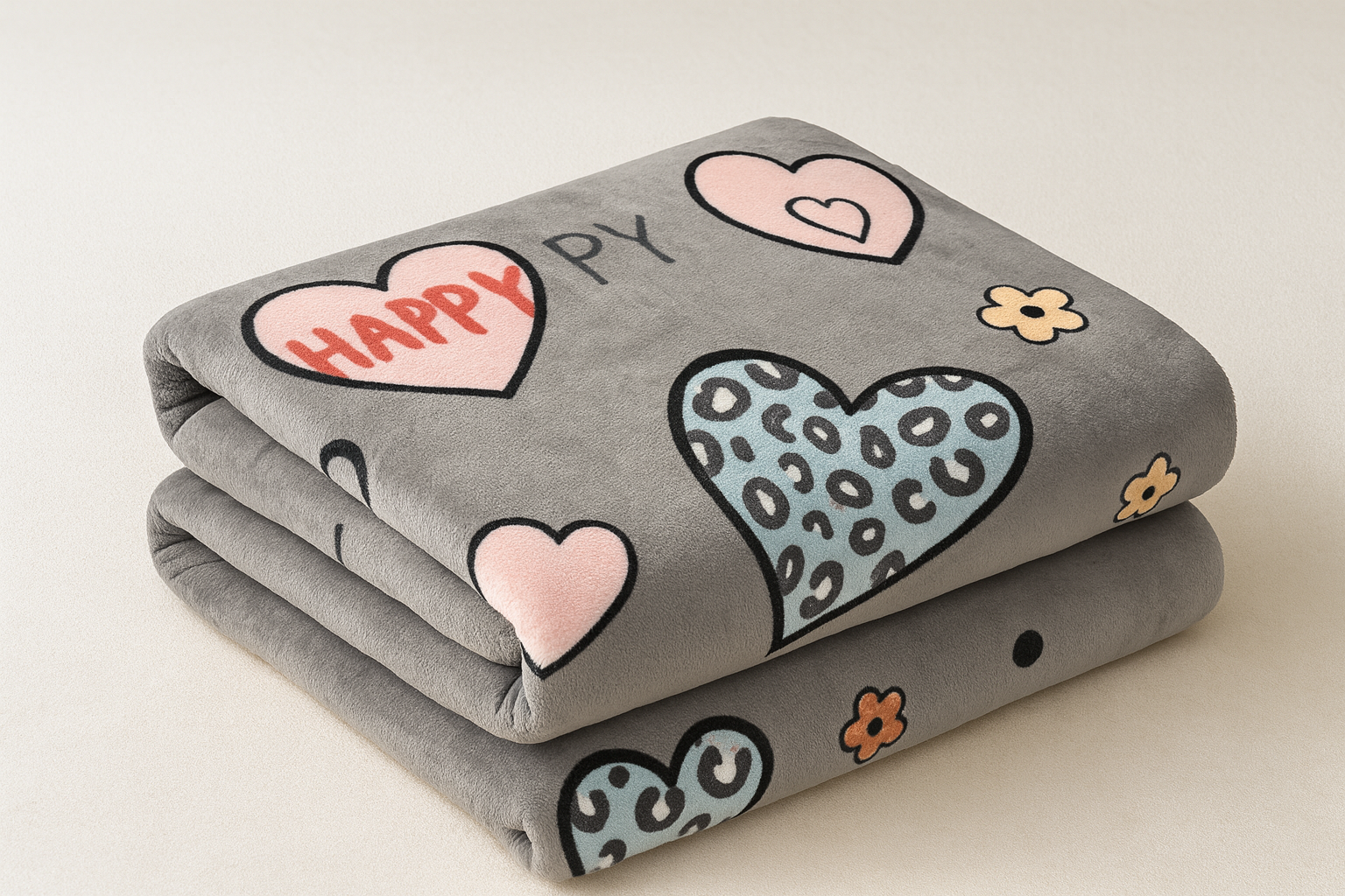 Alege o patura Cocolino 200x230 moderna si vesela, cu fundal gri si imprimeu cu inimioare si detalii leopard, perfecta pentru a aduce un plus de personalitate dormitorului. Designul tineresc si vibrant transforma patura intr-o piesa decorativa care atrage atentia si insufla energie pozitiva in orice incapere.